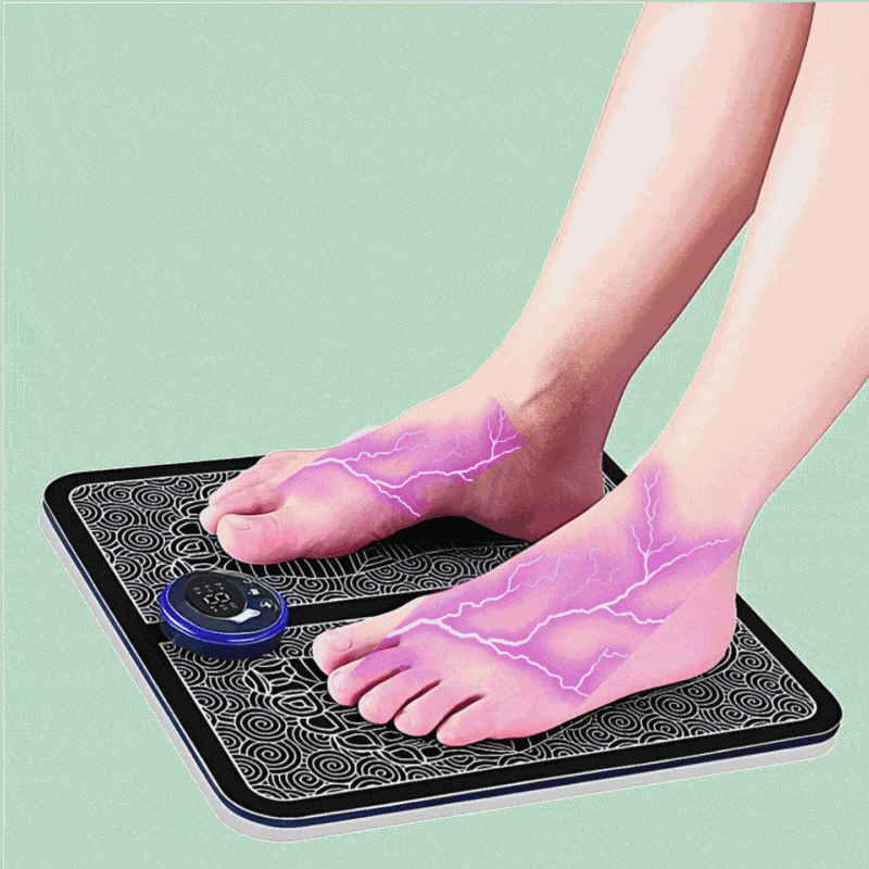 Electrical Muscle Stimulation (EMS) uses gentle pulses to contract and relax your muscles - like a mini workout for your legs while you sit